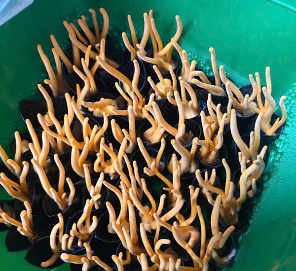 Nhận cung cấp Nấm phôi Đông trùng hạ thảo trên giá thể nhộng tằm để Quý khách về trồng tiếp. Nấm đạt chiều cao từ 2mm - 5mm, hoàn toàn khỏe mạnh. Sau thời gian 30 - 45 ngày có thể thu hoạch.